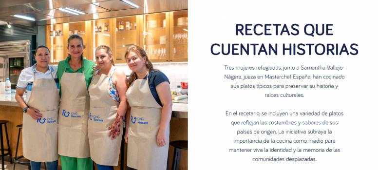 Este año, la ONG Rescate, con el apoyo de la agencia de publicidad y comunicación La Caseta, así como con la colaboración del Ministerio de Derechos Sociales, Consumo y Agenda 2030, Comedores Blanco y Gunni s Trentino, ha presentado su proyecto RESCooking, el cual ha arrancado con la organización de un showcooking protagonizado por tres mujeres refugiadas y Samantha Vallejo-Nágera, jueza en MásterChef España.