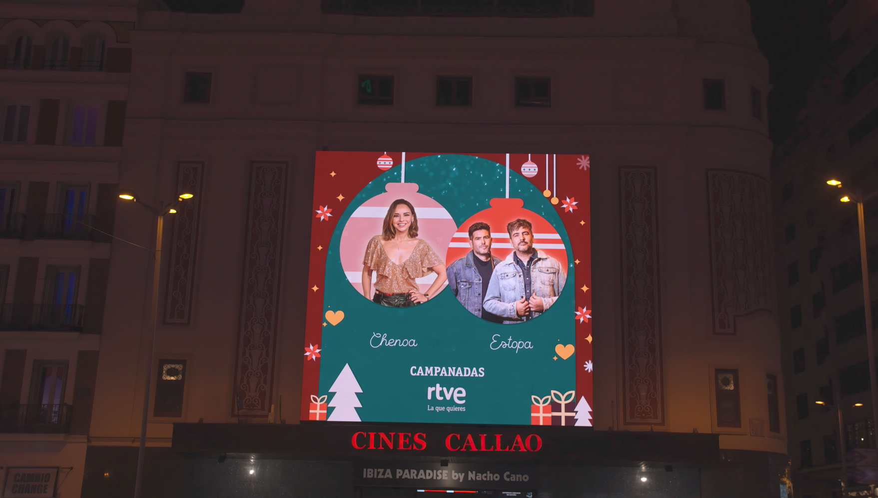 RTVE ha recurrido a uno de los enclaves más icónicos de Madrid para anunciar a los nuevos presentadores de las Campanadas de Nochevieja en TVE. Las pantallas de gran formato de Callao City Lights fueron el escenario elegido para comunicar en directo que Estopa y Chenoa tomarán el relevo de Andreu Buenafuente y Silvia Abril al frente de la retransmisión más vista del año en la televisión pública.