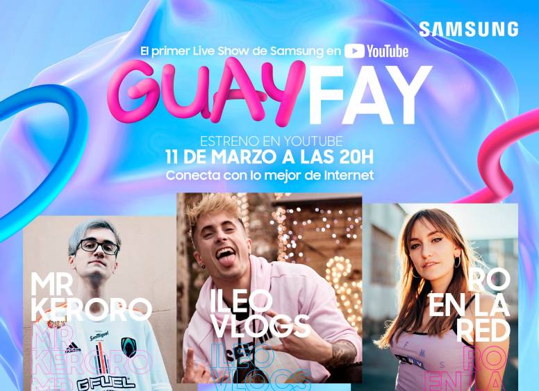 El formato de los contenidos en streaming sigue dando pasos de gigante en España, y empieza ya a consolidarse como una alternativa para la comunicación y la interacción entre las marcas y sus usuarios. Tanto es así que Samsung ha anunciado para el próximo 11 de marzo el lanzamiento de GuayFay, un nuevo programa mensual en YouTube Live en colaboración con la agencia creativa Cheil y la productora Mediapro, que contará con la participación de varias caras conocidas del mundo de la creación de contenidos online, las plataformas de streaming, e incluso la música.