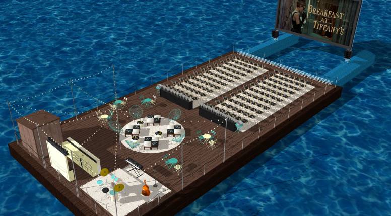 El próximo día 6 de agosto tendrá lugar el gran estreno de este cine flotante con la película Desayuno con diamantes del director Blake Edwards, protagonizada por Audrey Hepburn y George Peppard. Considerada como una de las principales comedias de la historia del cine, esta película cuenta en su haber con dos premios Óscar y con un Grammy a su banda sonora, entre otros reconocimientos.