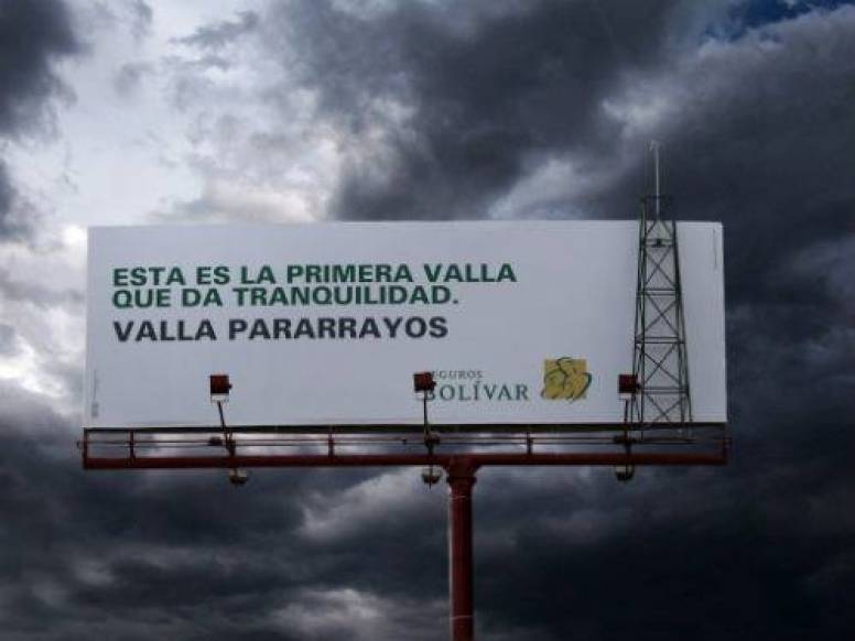 La estacionalidad metereológica también puede ser fuente de inspiración para las marcas y sus apuestas publicitarias. Abril y mayo son los dos meses más húmedos del año en la ciudad de Bogotá, que se caracterizan por las constantes tormentas y sus consecuentes rayos sobre los edificios y las calles de la capital. Una realidad que ha aprovechado la firma seguradora Seguros Bolívar para innovar en su publicidad e incuso en el medio exterior.