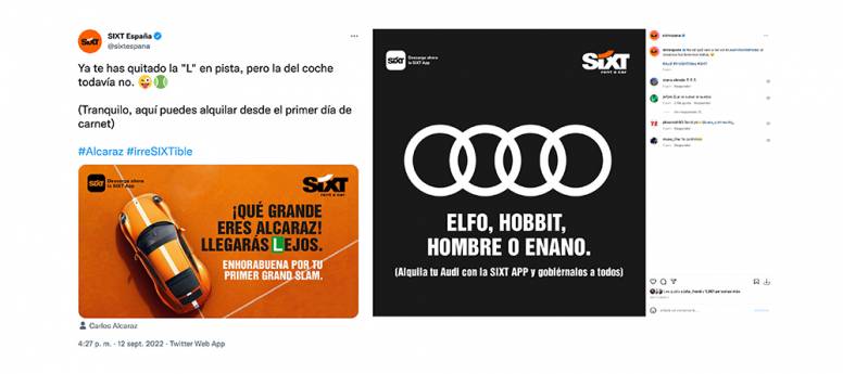 En su comunicación digital, además de jactarse con el estreno de la serie de Amazon de Anillos de Poder, en los últimos días Sixt también ha querido dejar su particular felicitación a Carlos Alcaraz. La marca bromea acerca del estreno del tenista al volante y lo hace con un toque muy canalla.