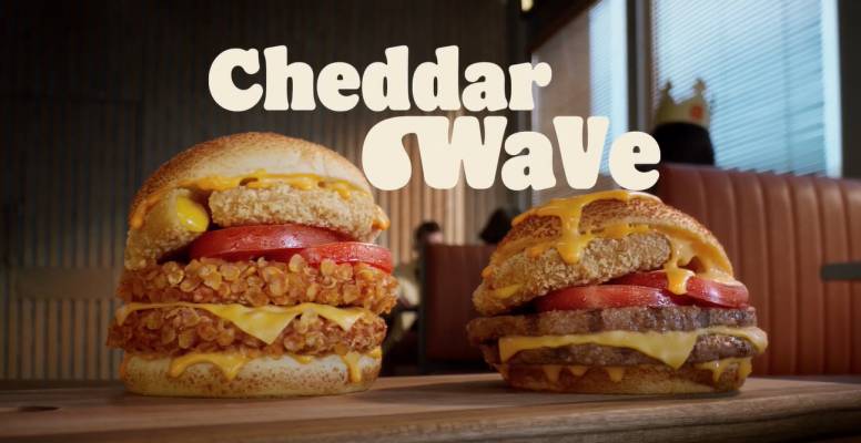 Así, todos aquellos cheese lovers que se atrevan a surfear esta gran ola de queso disfrutarán del pan con queso espolvoreado sobre su corona, un enorme anillo de queso cheddar rebozado y la inconfundible y deliciosa salsa de queso de Burger King que la baña por dentro. También incluye lonchas de queso cheddar sobre la carne a la parrilla, cebolla frita y rodajas de tomate fresco recién cortado. Y para satisfacer ese amor loco por la salsa de queso de Burger King, con esta nueva hamburguesa, los fans podrán pedir aparte un dip extra más grande que nunca y con más salsa de queso. Asimismo, Cheddar Wave está disponible en versión doble carne, pollo crujiente y doble pollo crujiente, y también en sus versiones vegetales plant based y doble plant based.