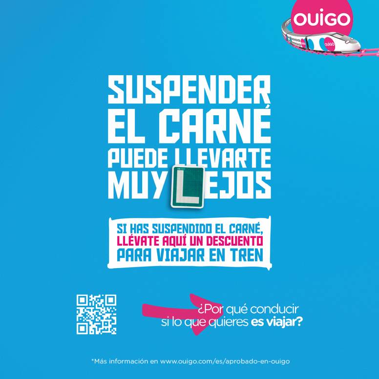 Ouigo sabe que los jóvenes quieren viajar en verano y que aprovechan los meses anteriores para sacarse el carnet y así poder moverse durante las vacaciones. Sin embargo, solo tres de cada diez aspirantes que se presentan al examen práctico consiguen aprobarlo en su primer intento. Esto se traduce en más gastos en clases en la autoescuela y ante esto, Ouigo quiere dar la oportunidad a estos jóvenes de seguir viajando con esta promoción que premia a aquellos que no hayan superado el examen.