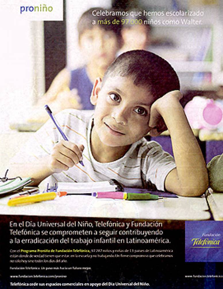 Telefónica cede su espacio publicitario a la lucha contra el trabajo infantil