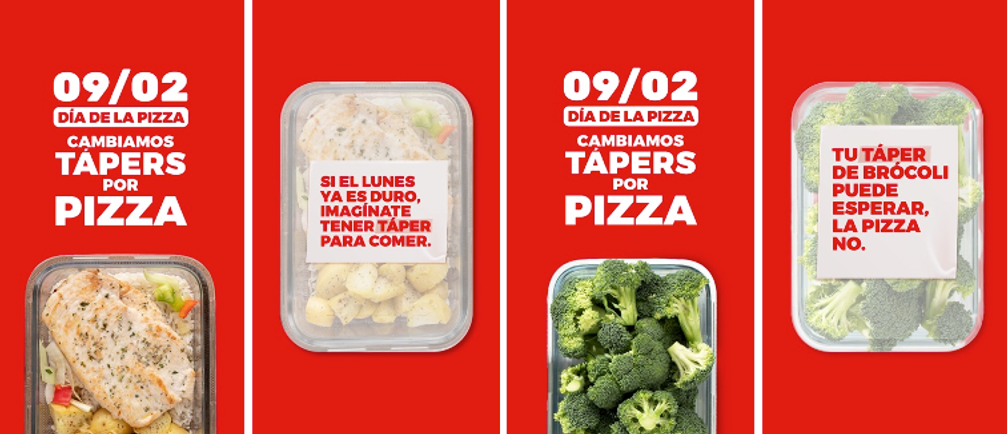 Ante el inconveniente de que el Día Mundial de la Pizza cayese en lunes, Telepizza decidió ponerle remedio con una acción pensada para animar el día, un llamamiento a todos los amantes de la pizza a que compartan de qué es su táper de lunes.
