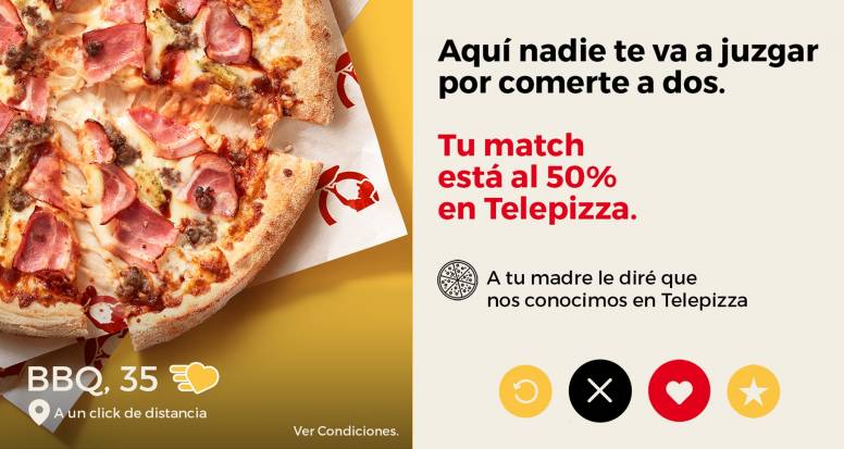 Telepizza ha decidido tunear durante unos días su App para dar a todos sus consumidores la posibilidad de hacer el mejor match con el amor verdadero, ese que nunca te falla: tu Telepizza favorita. Desde el 10 de febrero, la App de la marca tendrá una dinámica similar a las de las aplicaciones de citas en la que se podrá elegir entre las propuestas culinarias más solicitadas o incluso crear tu modelo de pizza perfecta.