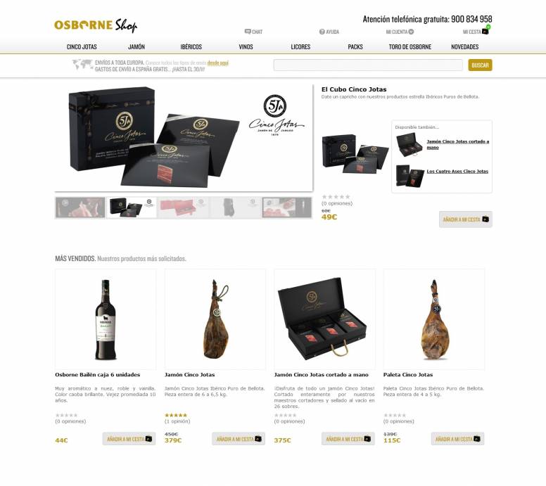 El mundo online de Osborne está de estreno. La marca ha remodelado su web de compras, apostando por la usabilidad, un diseño más cuidado y la integración de los productos de Osborne más reconocidos internacionalmente. A partir de ahora, quienes accedan a la web se adentrarán en un mundo de compras delicatessen y es que el catálogo se ha ampliado con la fusión de los productos gastronómicos de Osborne – vinos, productos ibéricos, licores- y los artículos de la marca del Toro de Osborne –ropa, accesorios, complementos-. El jamón Cinco Jotas tiene un lugar predominante dentro de la nueva tienda online. La marca, reconocida mundialmente por su calidad, se ofrece en nuevos y exclusivos formatos.