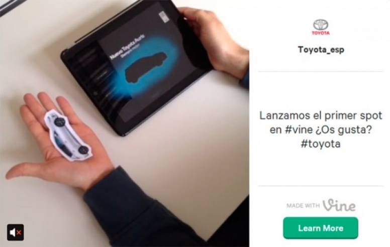 Toyota España ha desarrollado el primer spot para lanzarlo a través de Vine, la herramienta de vídeo para dispositivos móviles propiedad de Twitter, que se ha lanzado hace apenas una semana y que facilita la integración de vídeos en la red de microblogging.