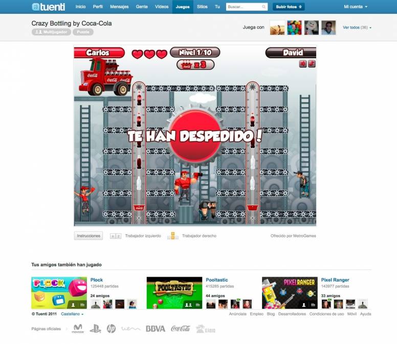 Tuenti se suma a la celebración del 125 aniversario de Coca-Cola, y lanza junto a la compañía de bebidas el primer juego integrado permanentemente dentro de la plataforma de la red social, “Crazy Bottling by Coca-Cola”. El juego recrea la fábrica de Coca-Cola con sus empleados, camiones y botellas y está basado en dos contrincantes que luchan por cargar cajas en cintas mecánicas. El ganador será el que sea el más ágil posible y al que no se le caiga ninguna caja.