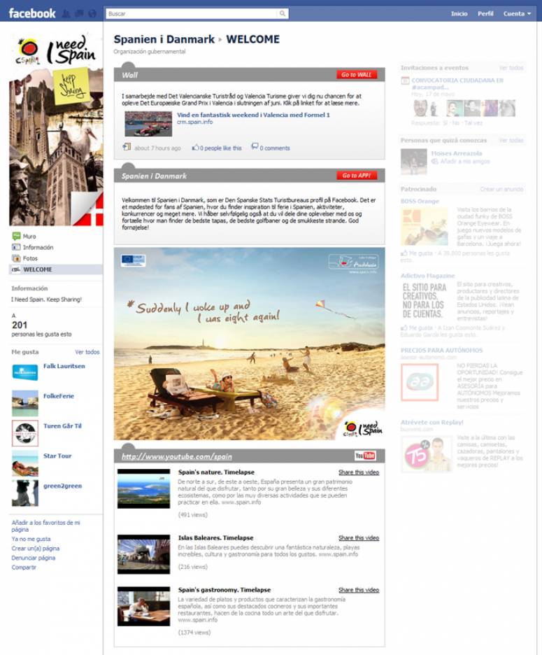 La página oficial en Facebook de cada oficina, cuenta con una serie de módulos en los que se integran los diferentes canales sociales (Youtube, Twitter) y secciones, todas con el mismo criterio y de forma unificada. Tendrán integrado en su página de Facebook el canal de Twitter de @Spain a través del módulo ‘Twitterbox’. En la sección de ‘Encuestas’, las oficinas podrán lanzar preguntas a los usuarios en el idioma local y así conocer mejor las necesidades e inquietudes de los usuarios de cada país. Y dentro del módulo de ‘Concursos’ cada oficina podrá lanzar diferentes modalidades: subida de fotos, video, comentarios… Múltiples acciones para animar a los usuarios de cada país a visitar España.