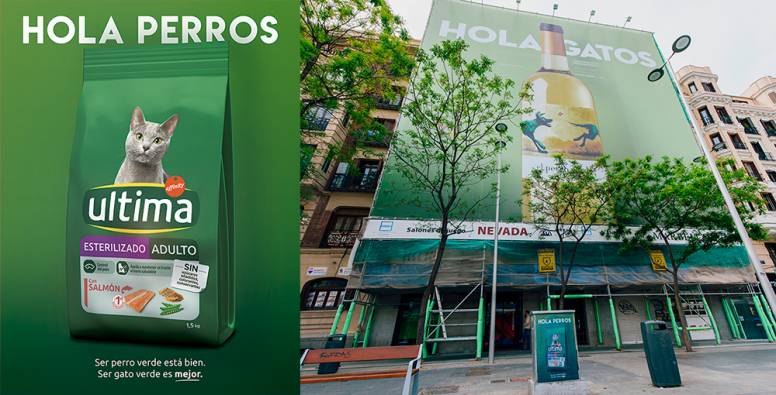 “Jugando con esta famosa enemistad que existe entre los perros y gatos en el imaginario colectivo, queríamos dar una respuesta divertida a la lona de “Hola Gatos”. Sin duda, nos dimos por aludidos, por lo de “gatos”, pero también por el color tan distintivo de nuestra marca, el verde. Una casualidad así no se podía desaprovechar”, ha comentado el equipo de marketing de Ultima.