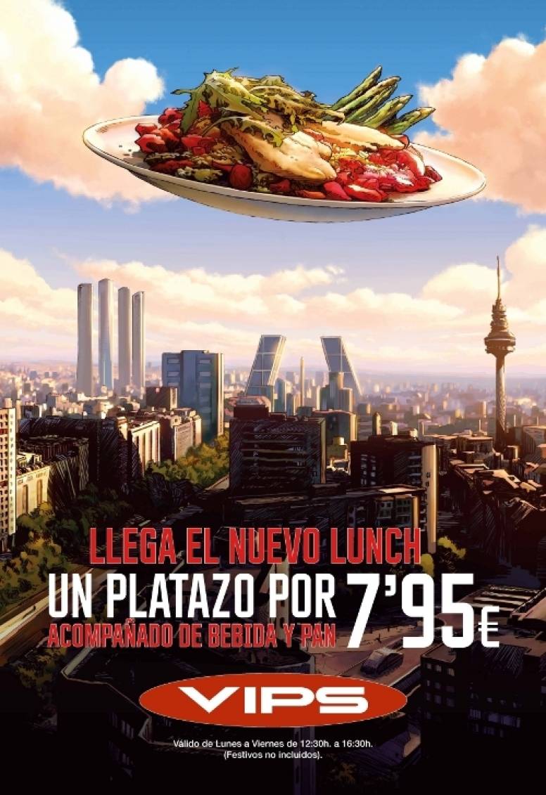 En el negocio de las cafeteías Vips tambien hay novedades con los lanzamientos de los nuevos menús de mediodía (de lunes a viernes por 7,95 euros) y cenas (de domingo a jueves por 6,50 euros). Ambos precios con IVA Incluido.