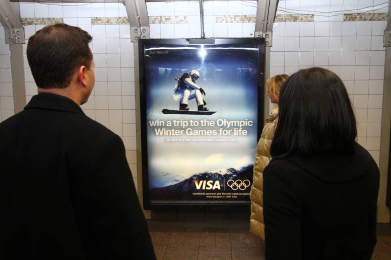 CBS Outdoor ha llevado a cabo su primera prueba de publicidad exterior en 3D. Aprovechando el lanzamiento de la nueva campaña publicitaria de la marca Visa se han incluido creatividades en este formato en la estación de metro de Grand Central Station de Nueva York. La compañía de tarjetas de crédito ha emitido un spot en 3D en la estación de metro para anunciar su patrocinio de los Juegos Olímpicos de Invierno y espera que más de un millón de personas hayan visto su publicidad exterior en 3D, para lo cual se repartieron miles de gafas de plástico y cartón.