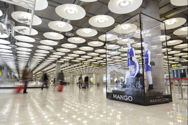 La firma de moda mango ha puesto en marcha una acción especial de marketing en el medio exterior para promocionar sus últimas colecciones. De la mano de la empresa Publimedia SP, especializada en publicidad exterior, la firma está presente en formatos y soportes especiales en la T4 del aeropuerto de Madrid-Barajas a través de seis vitrinas-escaparte que se han colocado de forma estratégica a lo largo de la terminal.