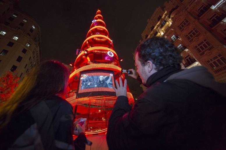 Dar la palabra a los ciudadanos es la estrategia de Vodafone para llegar a todos esta Navidad. Por eso, ha instalado dos pantallas gigantes junto al árbol de navidad que Vodafone y el Ayuntamiento de Madrid han instalado en la Gran Vía, para que cualquiera pueda enviar sus felicitaciones y verlas en directo.