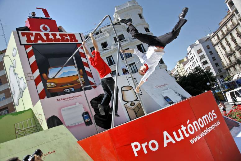 Para poner de relieve todas las ‘acrobacias’ que tienen que hacer los autónomos en su día a día, Vodafone España se ha apuntado al Parkour y ha creado un espectáculo en la plaza de Felipe II en Madrid. Allí, en distintos pases por la mañana y por la tarde, los transeúntes pueden ver y disfrutar de esta disciplina que consiste en desplazarse de un punto a otro lo más fluidamente posible, usando las habilidades del cuerpo humano y superando los obstáculos que se presenten en el recorrido, tales como vallas, muros, paredes, etc. De esta forma, Vodafone quiere decir a sus clientes que sabe adaptarse a sus necesidades, gracias al plan ‘Pro Autónomos’, que ofrece tres soluciones.