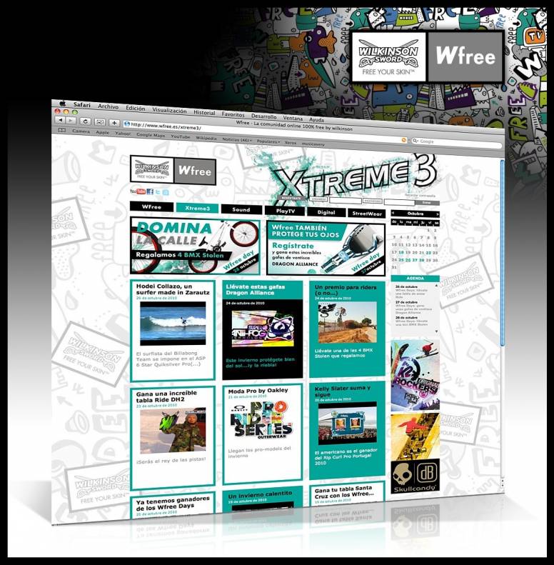 Si a principios de año la marca Wilkinson apostaba por el marketing deportivo con la campaña ‘Xtreme3 Riders Team’, ahora amplía el abanico de posibilidades y estrategias para ofrecer nuevas experiencias a los consumidores con un perfil joven y cool, a través de los accion sports, la música y el ocio digital como herramienta de comunicación y promoción. A través de su nueva plataforma digital www.wfree.es y mediante las principales redes sociales asociadas (Facebook, Twitter, Tuenti, YouTube, Flickr, Vimeo) la marca, apoyada por la consultoría de marketing deportivo Supernova Sports & Entertainment, creará y distribuirá sus propios contenidos: se activarán promociones exclusivas con las mejores marcas que rodean los action sports y con los principales grupos musicales del momento. También ofrecerá experiencias únicas con los mejores atletas nacionales e internacionales de freestyle y con los principales fabricantes de videojuegos.