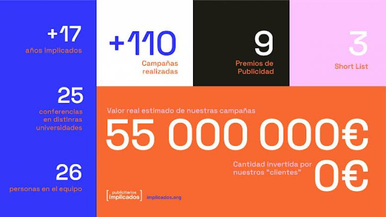 17 años, 110 campañas, 9 premios y tres short list, 2 récords del mundo, trabajo por valor de 55.000.000 de euros, sin cobrar nada.