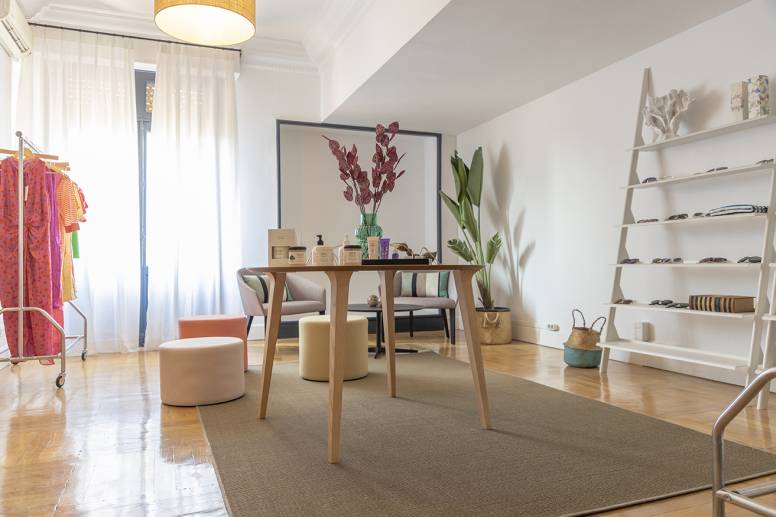 Diseñado para adaptarse a un gran número de proyectos, los 120 metros cuadrados del espacio se dividen en tres salas principales, además de otras auxiliares y una cocina que le aporta un valor añadido para su uso como lugar para eventos. "Distrito 010 permite a cualquier marca la posibilidad de mantener expuestos de manera fija sus productos en un espacio céntrico y singular. Además de showroom permanente, ofrece un amplio número de posibilidades: desde acoger open days de moda y belleza, albergar presentaciones de producto o eventos de marca, realizar reuniones corporativas, convertirse en espacio para grabaciones de vídeos o podcasts hasta ser simplemente un lugar exclusivo donde llevar a cabo cualquier tipo de networking", profundizan.