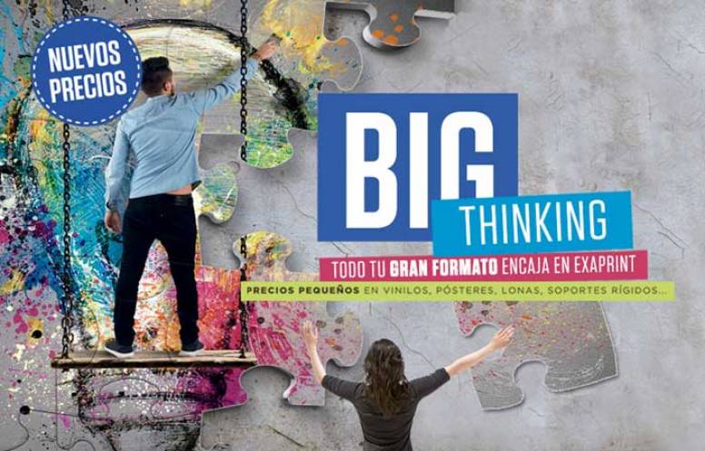 La imprenta online Exaprint, especializada en los sectores de Artes Gráficas, la Comunicación y el Marketing, lanza una nueva campaña de gran formato con precios más bajos y nuevos productos bajo el lema “Big thinking”.