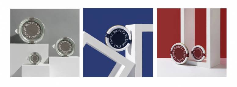 De este modo, el color gris (Pantone Black 0961) identifica el Caviar Riofrío Ecológico; el azul (Pantone 7463 C) es el elegido para vestir el Russian Style y Caviar Riofrío Tradicional se reconoce con el color granate (Pantone 1815 C).