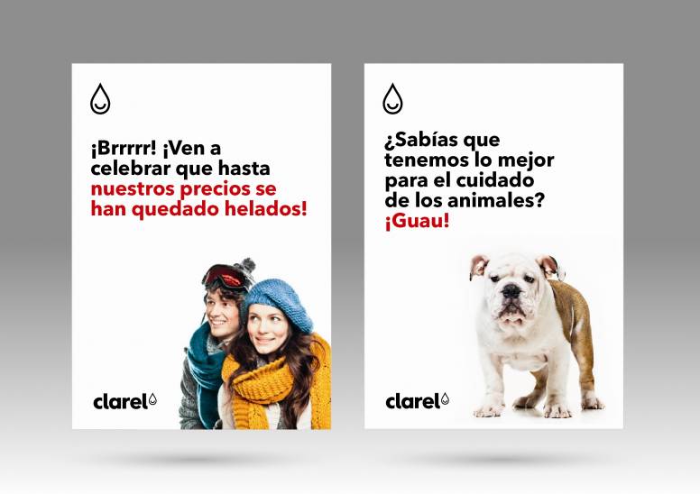 La consultora se ha encargado del naming de la nueva insignia, Clarel, buscando reflejar la esencia de marca, que aúna la idea del brillo y la claridad. Para sostener esta idea, se recurrió al diseño de un logotipo que puede interpretarse como una sonrisa y nos remite al optimismo de la marca. El concepto del brillo puede verse en todo el universo visual de la marca. Asimismo, son muy representativos los pictogramas de las distintas secciones de productos. La tipografía escogida, por otra parte, es sencilla y clara, lo que refleja, una vez más, la simplicidad, comodidad y facilidad en la experiencia de compra para el cliente. La nueva insignia se ha construido sobre una paleta cromática de tres colores (blanco, rojo y negro); rojo para destacar la promoción, y el blanco y el negro para transmitir simplicidad y claridad.