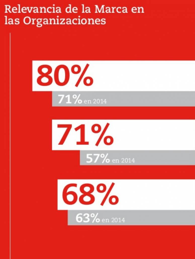 Las conclusiones del informe, elaborado a partir de una encuesta a 275 empresas, señalan que un 80% de empresas considera que la gestión de la marca contribuye de forma importante a la consecución de sus objetivos, aunque solo un 60% la identifican como un activo intangible de alto valor. El informe también destaca la creciente implicación de los comités de dirección, y es que en el 70% de las empresas encuestadas, la gestión de marca se discute en el comité de dirección, frente al 60% registrado en 2014.