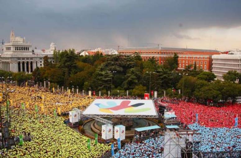 El Grupo Imagina, agencia creativa de la idea y directora del evento final de la candidatura de Madrid 2016, consiguió repartir un millón de cartulinas de colores (rojo, verde, azul y amarillo), más de 100.000 gorras y 40.000 pulseras conmemorativas con motivo de la candidatura fueron entregadas a los asistentes. Todo en apenas una hora. El objetivo era crear el mayor mosaico humano con los colores del movimiento olímpico que demostrase el compromiso de la ciudad y sus ciudadanos con los Juegos. El cierre de fiesta lo protagonizó David Bisbal que dio un concierto gratuito que encandiló a los asistentes al evento.