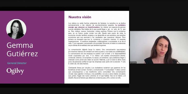 En una jornada realizada de forma virtual, en un formato streaming que ha reunido a más de 200 personas, la directora general de Ogilvy Barcelona ha asegurado que se debe entender la comunicación “como un acelerador de la transformación que anhelamos y que permite poner en una misma mesa de trabajo a todos los agentes de una misma compañía” y ha expresado la convicción de Ogilvy Barcelona por “generar influencia positiva hacia ese nuevo modelo empresarial”.