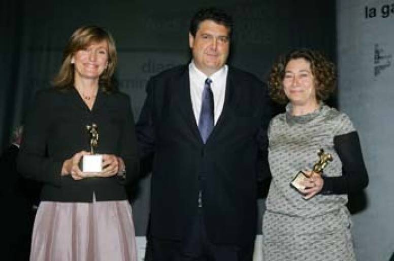 Carmen Bosch, de Audi, y Francesca González, de DDB, recibieron el Ampe de Oro de manos de Jesús Quesada, presidente de Ampe.