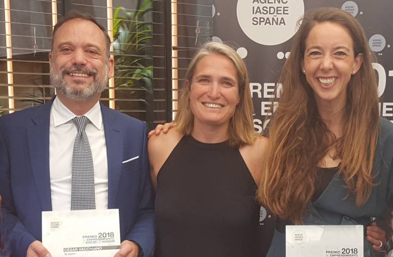 César Vacchiano, presidente de Scopen, y Carlota Pi, cofundadora de la compañía eléctrica Holaluz, han sido galardonados con los Premios al Emprendimiento que otorga la Asociación Agencias de España a los empresarios españoles independientes por su trayectoria y logros. Asmimismo, fueron nombrados socios de honor de la asociación, distinción que también tienen Ricardo Pérez y Esther Valdivia.