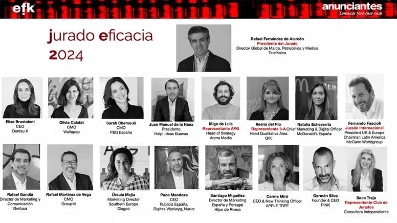 En palabras del presidente del Jurado Eficacia 2024, Rafael Fernández de Alarcón, director global de marca, patrocinios y medios de Telefónica, “los Premios a la Eficacia nos aúnan a todos los actores del marketing y la publicidad poniendo en valor a cada una de las partes necesarias para el resultado más eficaz, el que engrandece nuestro sector en la economía, del que aprendemos y nos inspira”.
