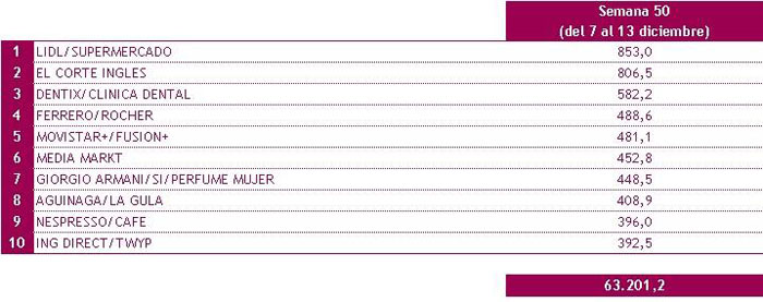 Top 10 Campañas Publicitarias (Grp's adultos - PyB) del 7 al 13 de diciembre de 2015