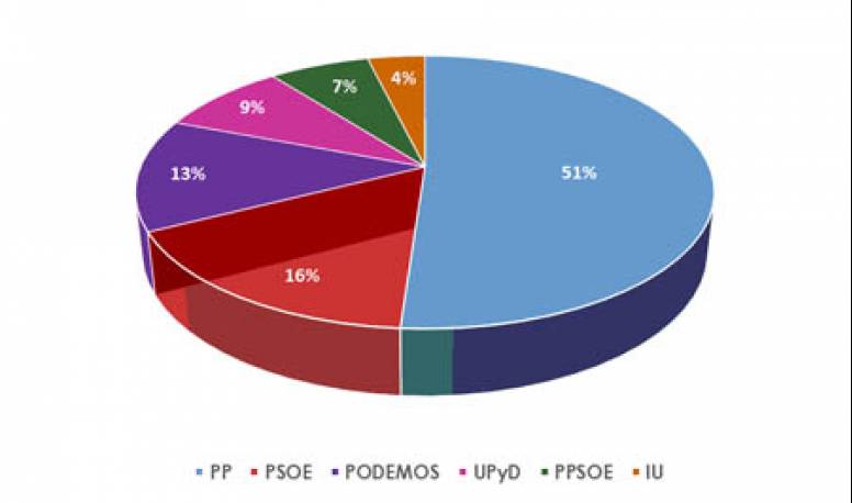 Desde el día 8 de mayo, comienzo de la campaña electoral, el promedio de menciones diarias en torno a estas elecciones se incrementa un 133%. El PP recibe más de la mitad de las menciones, seguido del PSOE, con el 16%.