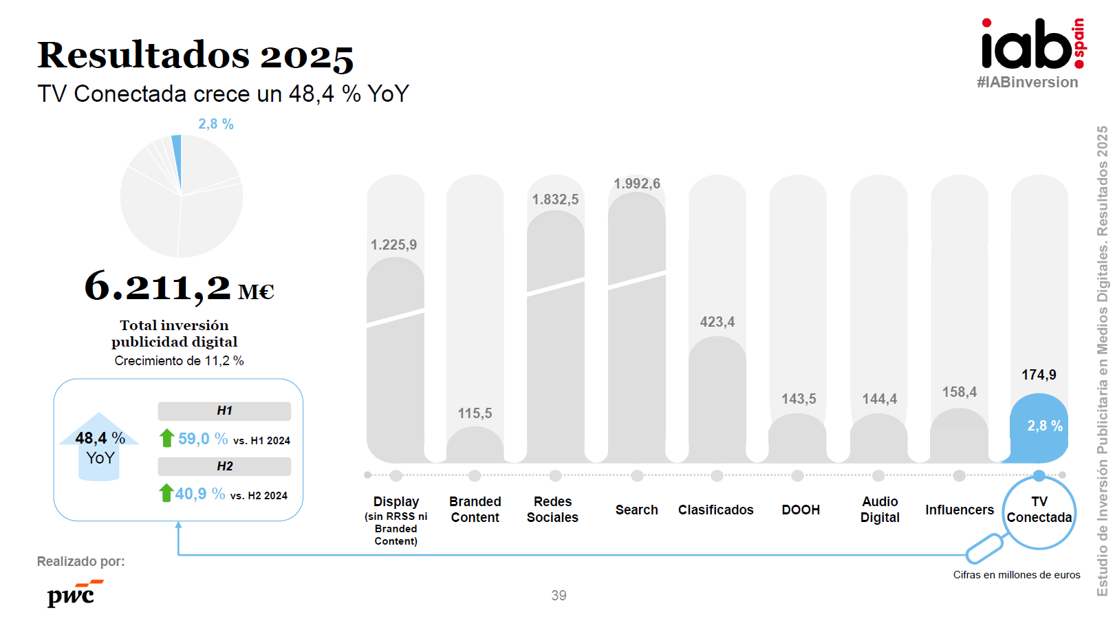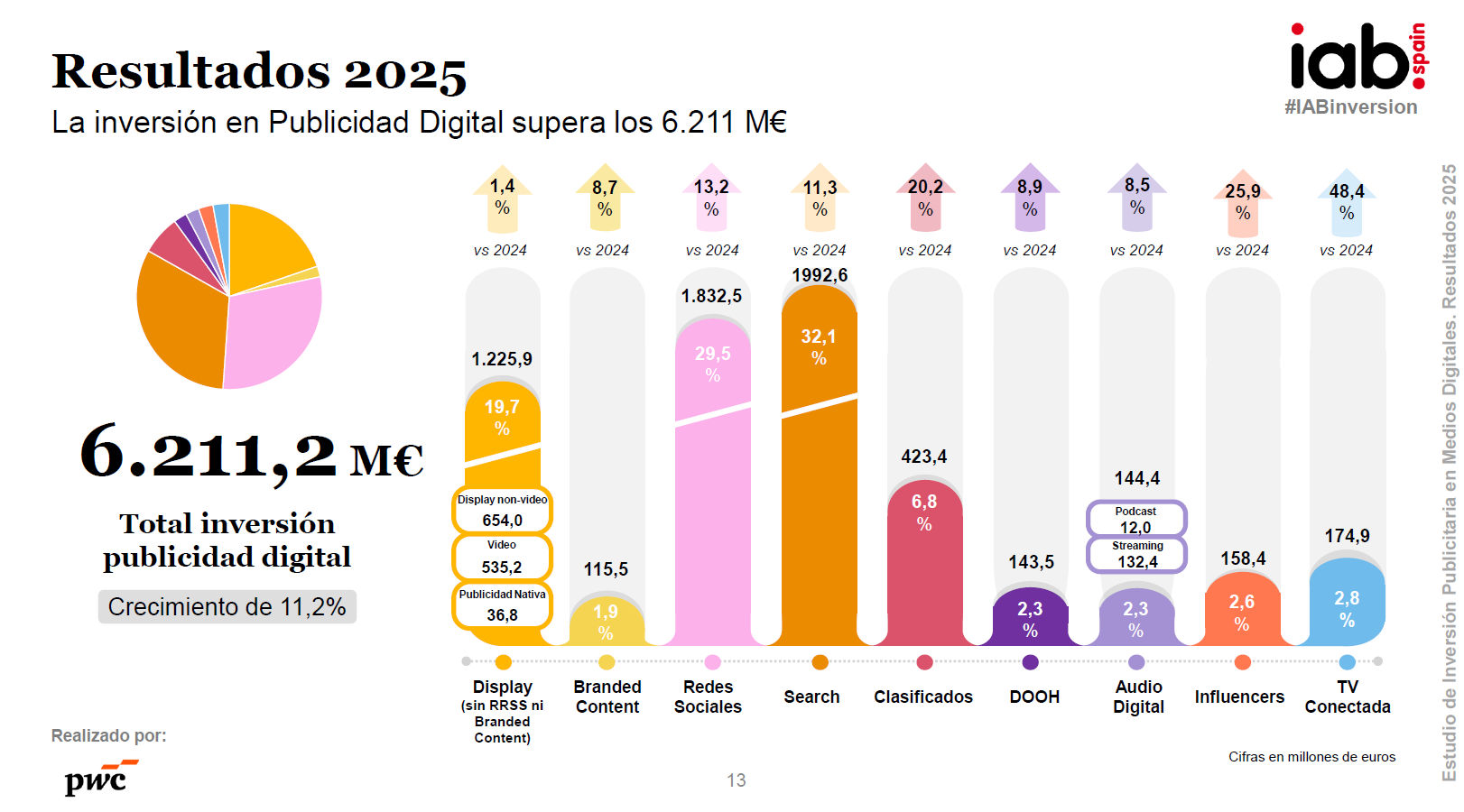 La inversión publicitaria en medios digitales en España ha alcanzado un nuevo máximo histórico en 2025, situándose en 6.211,2 millones de euros, lo que supone un crecimiento del 11,2% respecto al año anterior. Más allá del dato puntual, el estudio elaborado por IAB Spain en colaboración con PwC confirma que el entorno digital concentra ya el 69,1% de la inversión total en medios, consolidándose como el principal motor del mercado publicitario.