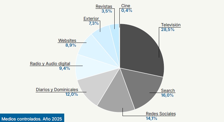 Se confirma un cierre de 2025 marcado por la desaceleración del mercado, pese al crecimiento económico. La inversión total retrocede un 2,6%, aunque los medios controlados mantienen un leve avance. Lo digital supera ya el 55% del total en estos medios, mientras televisión reduce su peso y crecen formatos como exterior, websites e influencers