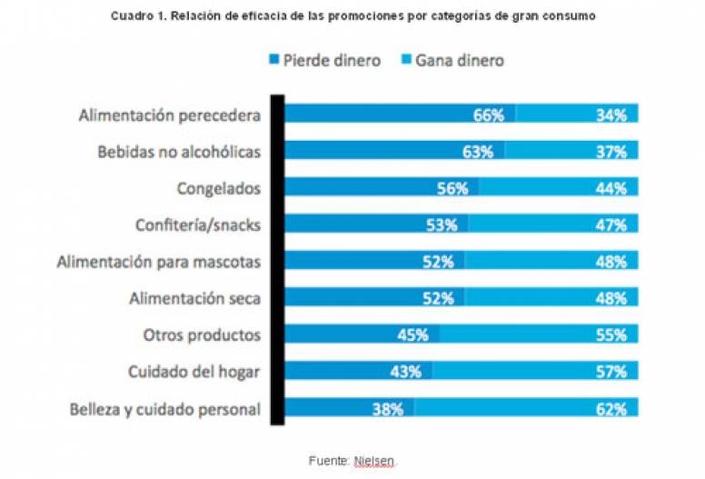 El informe “Comportamiento de las promociones en punto de venta”, de la consultora Nielsen, revela que sólo la mitad de las campañas que se realizan generan retorno de la inversión, a pesar del contexto favorable para las estrategias promocionales, pues dos de cada tres consumidores afirman ser conscientes de los precios de los productos y cuatro de cada diez busca activamente y compra artículos en oferta.