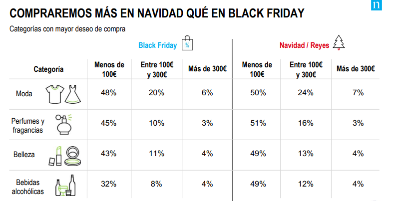 Este año, los españoles invertirán más en las compras realizadas en Navidad que en el Black Friday | Fuente: Nielsen Media