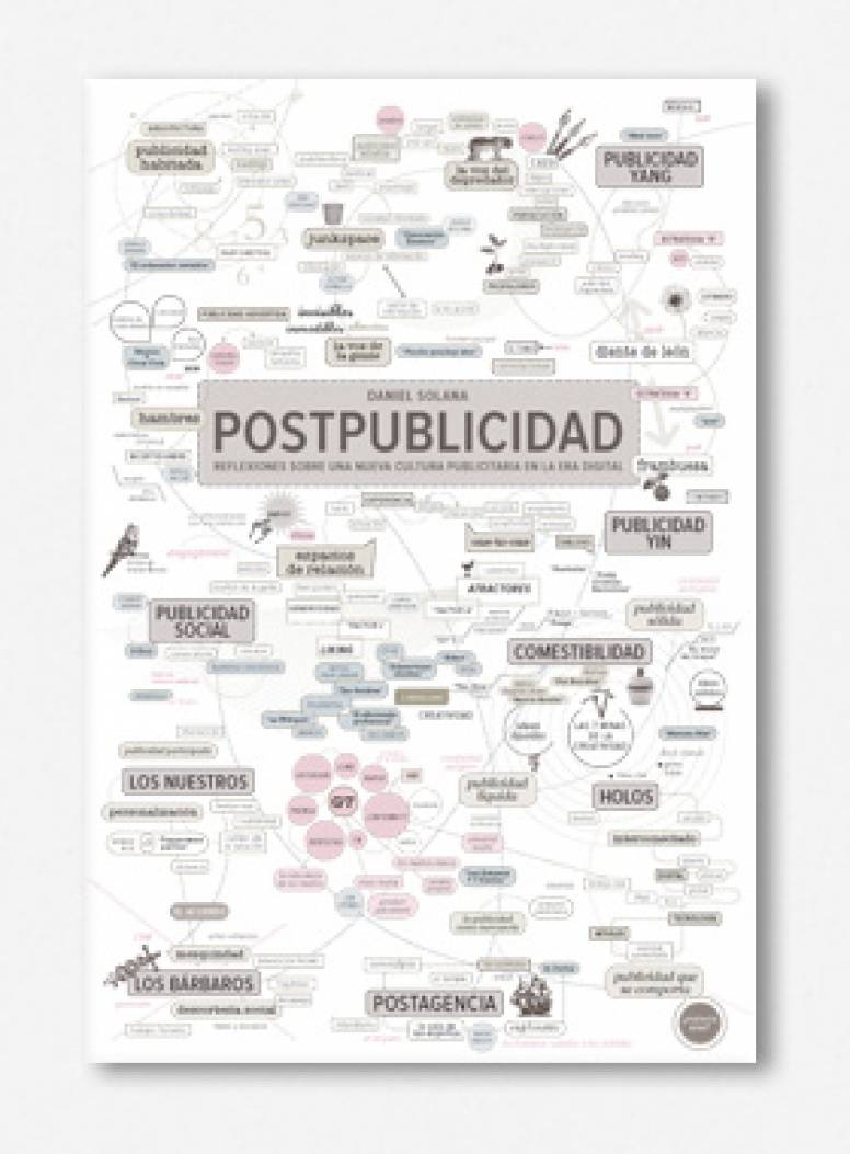 “Pospublicidad. Reflexiones sobre una nueva cultura publicitaria en la era digital”, es el título del libro de Daniel Solana, fundador de Doubleyou y uno de los grandes expertos españoles en marketing digital. El libro explica y comenta los cambios que se han producido en la publicidad tras la irrupción de internet y los nuevos medios. Del paso de una publicidad yang, que como un diente de león viaja en la distancia con mensajes livianos, a otra yin, como la frambuesa, que atrae y gusta y que establece una relación con el consumidor. Se trata de una nueva publicidad basada en productos publicitarios consumibles con encantamiento, es decir, que vinculan el mensaje emocionalmente con el consumidor haciéndole partícipe del mismo.