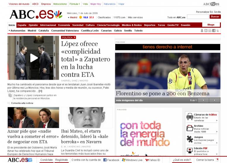 Entre las principales novedades de la oferta informativa y de servicios destaca la renovación del menú de navegación y la aparición de ABC.id, una forma de participación al servicio del usuario que facilita su presencia en las redes sociales, la difusión sistemática de contenidos y la cobertura de eventos.