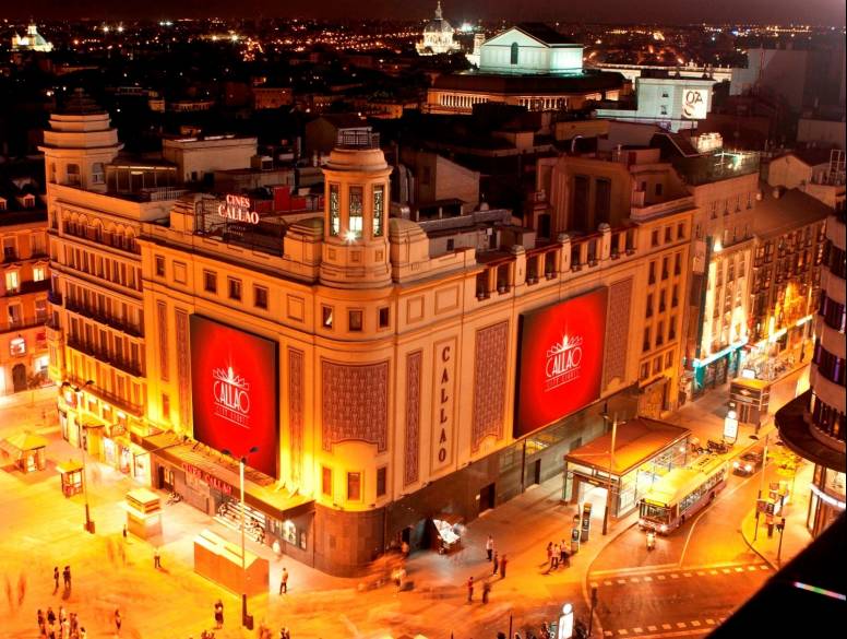 Por primera vez, la lotería de Navidad se emitirá a través de las pantallas digitales ubicadas en la fachada principal del histórico edificio de los cines Callao y la calle Jacometrezo