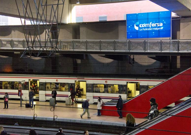 Apostando por la tecnología, Confersa ha instalado cuatro videowalls en la estación de Atocha de Madrid, concretamente en los andenes de Cercanías, para dar cobertura a los más de 10 millones de viajeros que cada mes utilizan esta estación para sus desplazamientos diarios.