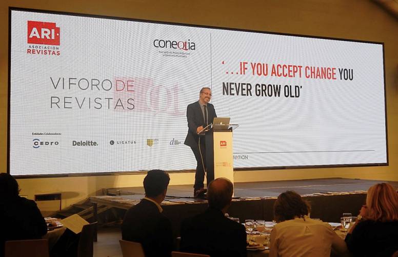 La conferencia, incluida en el VI Foro de Revistas, fue organizado por la ARI y Coneqtia, en el Auditorio de la Casa del Lector.
