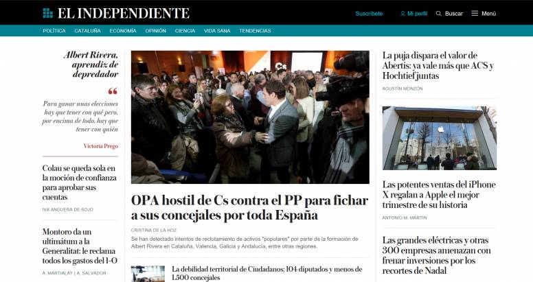 Tras poco más de un año de vida 'El Independiente' alcanza casi el millón de usuarios únicos (863.000 según el informe de diciembre de comScore) y ya ha anunciado que para este 2018 se centrará en impulsar el modelo de suscripción para generar mayores ingresos, al margen de los publicitarios.