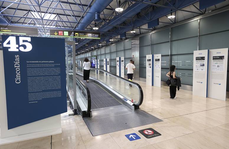 La muestra, que forma parte de la celebración del 45 aniversario del diario, reúne algunas de las portadas más relevantes del periódico y se puede visitar hasta el 8 de octubre en la Terminal 2