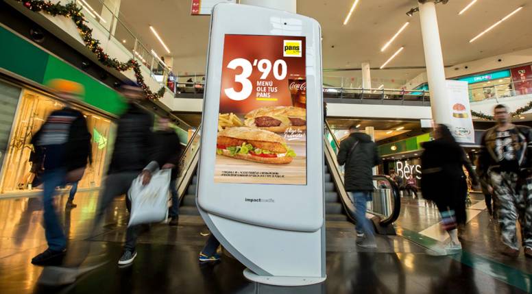 Los Centros Comerciales actuales son auténticas ciudades, símbolos de modernidad y convivencia donde usuarios de múltiples perfiles pasan gran parte de su ocio, con una amplia oferta de comercios de todo tipo. La oferta de Impactmedia está presente en más de 90 centros comerciales, donde cuenta con más de 1.200 pantallas digitales. Además en los últimos meses ha incorporado a su oferta un producto innovador y exclusivo en 100 hipermercados Carrefour de España, instalando más de 700 nuevas pantallas digitales que dan a las marcas acceso directo a una audiencia de 180 millones de visitas anuales.