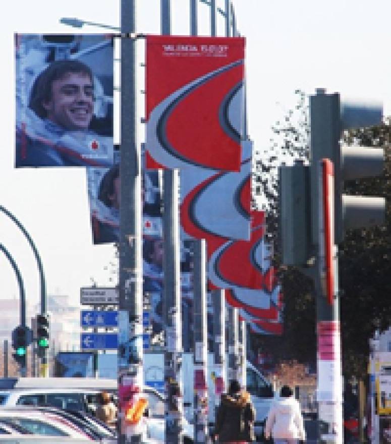 Clear Channel ha colocado alrededor de 3.500 banderolas de su cliente Vodafone en Valencia como parte del patrocinio del operador de telefonía móvil del equipo McLaren Mercedes.
