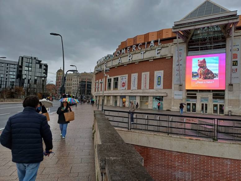 La imponente pantalla Skyled Bilbao, con dimensiones de 49 metros, se encuentra estratégicamente ubicada en la fachada del Centro Comercial Zubiarte, junto al puente Deusto y frente a la emblemática torre Iberdrola. Este impresionante espacio digital se integra perfectamente en los espacios urbanos de Bilbao, capturando la atención de peatones y conductores. Una pantalla logra 2.224.456 impactos únicos al mes (Datos Appcelerate).