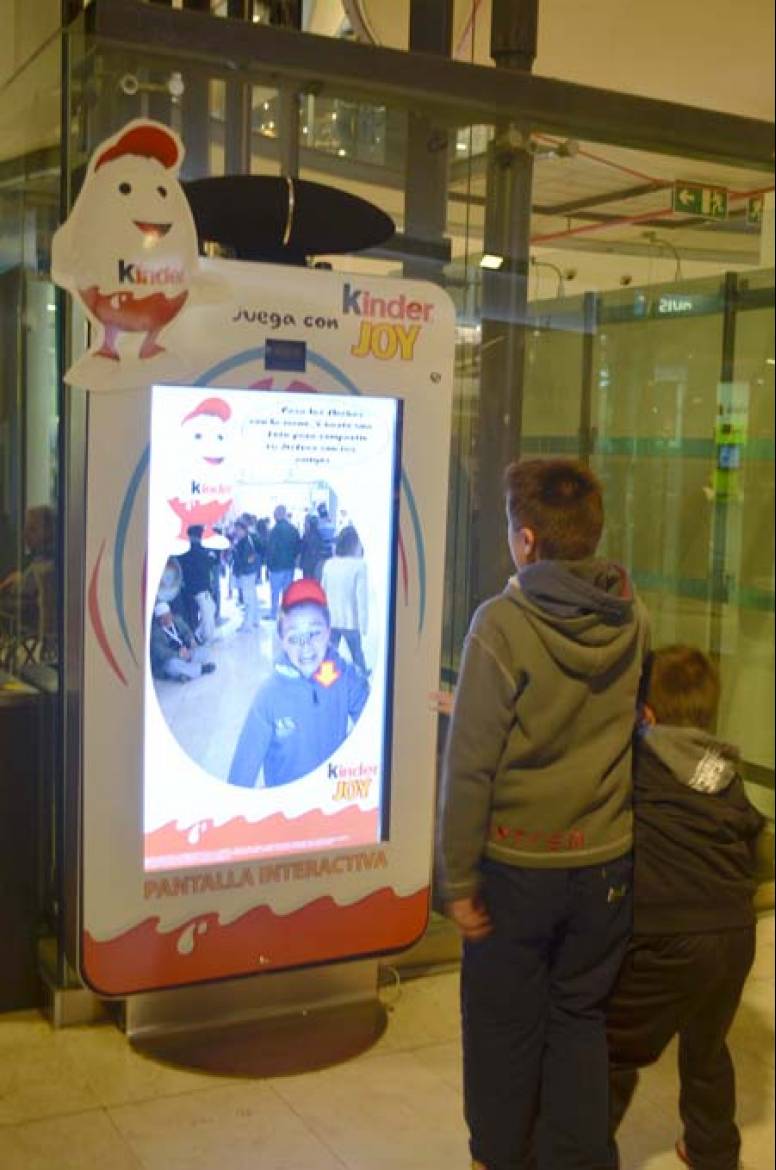 La acción, que empezó el pasado viernes 24 de mayo y que finalizará el 29 de junio, consiste en un juego interactivo de realidad aumentada mediante el cual pequeños y no tan pequeños pueden verse reflejados en la pantalla de dos metros de altura y disfrazarse de la mano de 'Kinderino', el personaje estrella de Kinder Joy. Además, todos los viernes y sábados se activa el concurso para ganar instantáneamente packs familiares de entradas de cine con el único requisito de tener a mano un Kinder Joy.